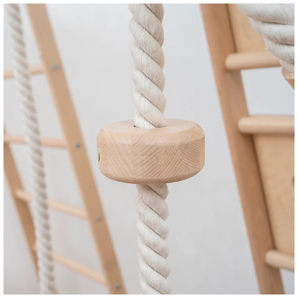 Lano s 5 okrúhlymi stupienkami je ideálny gymnastický doplnok určený na zlepšenie lezenia, podpore motoriky a podpore rozvoja koordinácie a svalovej sily. Je dokonale kompatibilný s montessori konštrukciami a ľahko sa prichytí pomocou špeciálneho fixačného systému. Proces je rýchly a jednoduchý a zaisťuje minimálne prerušenie počas hrania. Lano je navrhnuté tak, aby vydržalo nosnosť až 60 kg. 100% bavlnené lano je mäkké na dotyk a hypoalergénne. Horolezecké lano odporúčame používať iba v interiéri.Dodatočné parametre