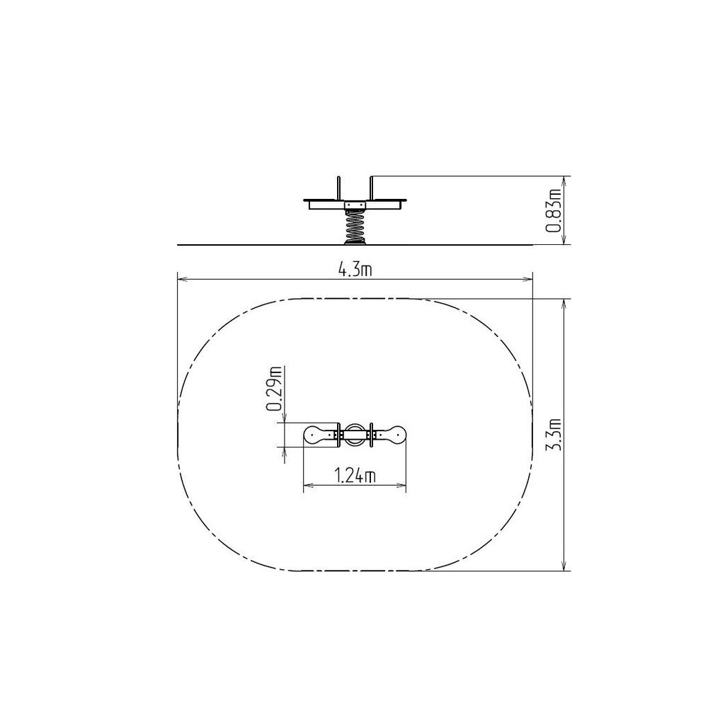 - Vahadlová hojdačka na pružine malá - B má pádovú výšku 1 m a preto stačí ako dopadová plocha iba udržiavaný trávnik a nie je potrebné tvoriť špeciálne dopadové plochy. Ak na pozemku nie je kvalitný trávnik, odporúčame tu položiť gumové zatrávňovacie dosky Grass alebo Saf z našej ponuky.