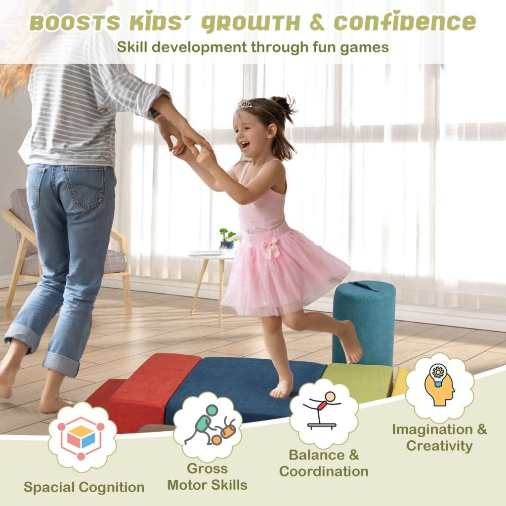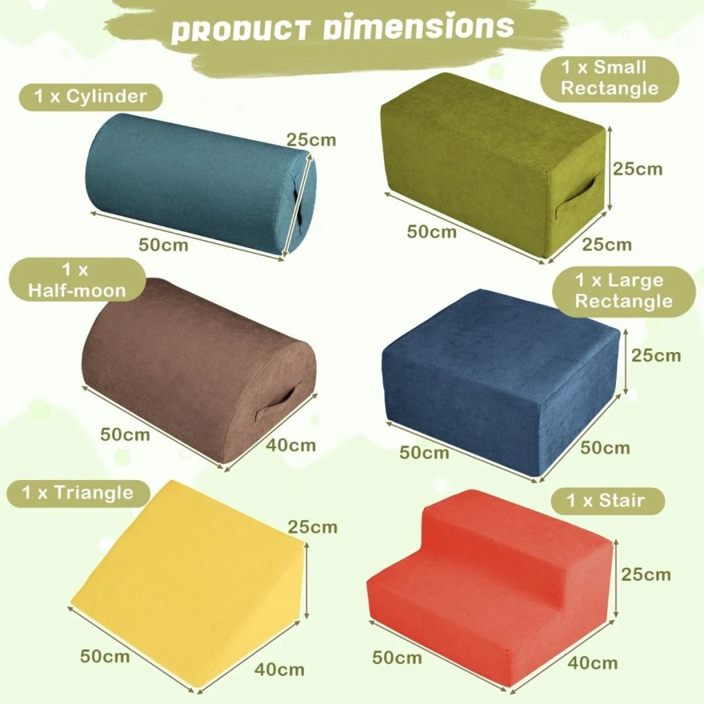 Zábavná penová hracia súprava sa skladá zo šiestich rôzne tvarovaných kociek, ktoré môžu deti ľubovoľne kombinovať a podnecovať tak svoju fantáziu a kreativitu. Okrem toho môžu deti pri hre rozvíjať svoju koordináciu a motoriku, čo je veľmi užitočné pre ich zdravý rast. Sú použité vysoko kvalitné a bezpečné materiály: Sú vyrobené z vysoko kvalitnej mäkkej peny a potiahnuté materiálom príjemným na dotyk, čo zaisťuje bezpečnosť a pohodlie pri hre. Bloky sa tiež ľahko čistia vďaka odnímateľným krytom a praktickým rukovätiam umožňujú ich premiestňovanie medzi miestnosťami. Naša sada hračiek je ľahká a stohovateľná bez toho, aby zaberala veľa miesta. Preto si táto obľúbená kolekcia penových blokov nájde miestečko v každej detskej izbičke. Je vhodná do škôlok, domácností, kde sa deti zabavia a rodičia si oddýchnu. Táto hračka je špeciálne navrhnutá pre deti, aby podporila ich živú povahu. Materiály: textil, pena Čistá hmotnosť: 8,5 kg Rozmery schodov: 50 x 40 x 25 cm Rozmery trojuholníka: 50 x 40 x 25 cm Rozmery valca: 25 x 50 cm Rozmery polmesiaca: 40 x 50 cm Rozmery veľkého obdĺžnika: 50 x 50 x 25 cm Rozmery malého obdĺžnika: 50 x 25 x 25 cmDodatočné parametre