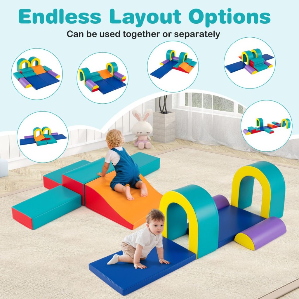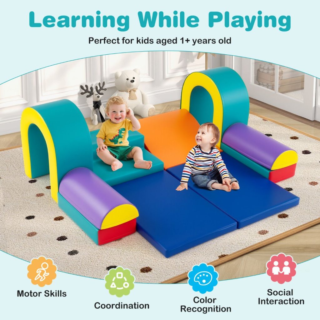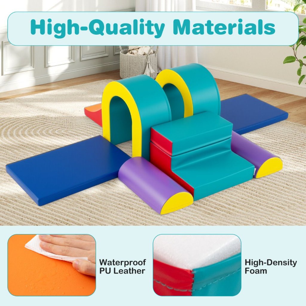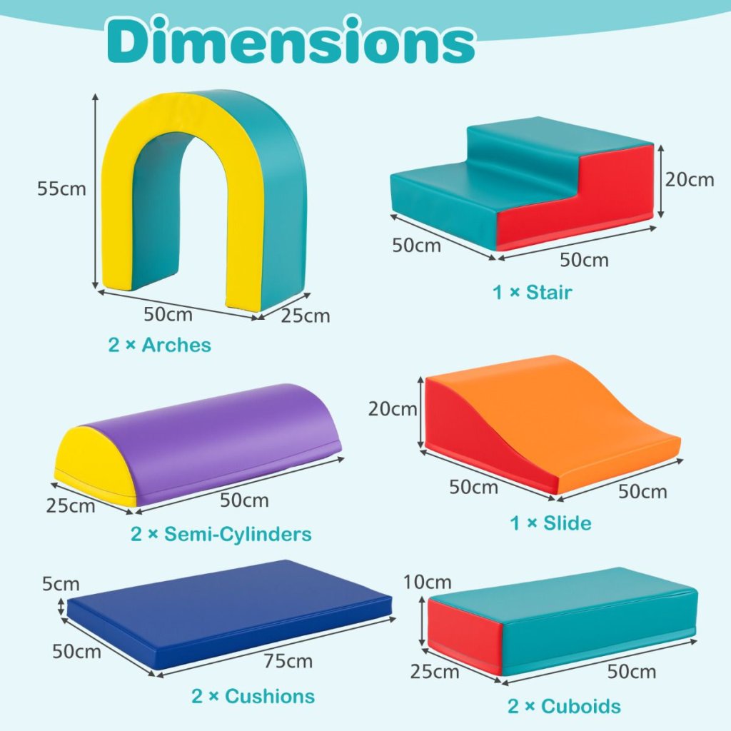 Objavte svet nekonečnej zábavy s touto 10-dielnou sadou mäkkých penových stavebných kociek, ktoré premenia každú detskú izbu na ihrisko. Farebné kocky sú navrhnuté tak, aby deti mohli bezpečne liezť, stavať, plaziť sa a šmýkať sa, pričom rozvíjajú svoje motorické zručnosti, rovnováhu a predstavivosť. Mäkký povrch z netoxickej peny chráni pred nárazmi, takže sa nemusíte obávať o bezpečnosť ani pri tých najdivokejších hrách. Kocky majú ľahkú, ale stabilnú konštrukciu a vďaka rôznym tvarom ich možno neustále preusporadúvať do nových herných kombinácií – od malých domčekov cez prekážkové dráhy až po šmýkačky a tunely. Sada je ideálna pre domáce použitie, detské izby, jasle a detské kútiky. Povrch sa ľahko umýva, takže údržba trvá len pár okamihov. Táto sada nie je len hračkou, ale aj prostriedkom na objavovanie pohybu, kreativity a radosti z každodenných dobrodružstiev. Parametre: Farba: viacfarebná Materiály: syntetická koža, EPE pena Rozmery každého bloku: 50 × 25 × 55 cm (D × Š × V) Rozmery každého bloku: 50 × 25 × 10 cm (D × Š × V) Rozmery každého vankúša: 75 × 50 × 5 cm (D × Š × V) Rozmery každého polvalca: 12,5 × 50 cm (D × V) Rozmery šmýkačky: 50 × 50 × 20 cm (D × Š × V) Rozmery schodov: 50 × 50 × 20 cm (D × Š × V) Celková čistá hmotnosť: 7 kg Vhodný vek: 1+ rokyDodatočné parametre