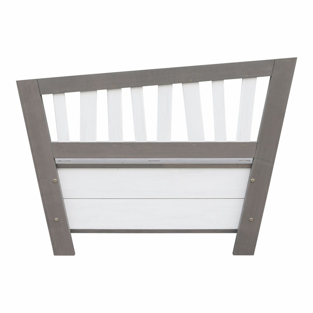 Užitočný aj dekoratívny doplnok na Vašu záhradu, terasu či verandu. Drevená lavička s modernými šedo-bielymi farbami je ideálna do záhrady či na terasu. Výborne ladí s modernými prvkami, pod vekom sa ukrýva užitočný úložný priestor na hračky, hry, podsedáky či záhradné náčinie. Príjemné posedenie s opierkou chrbta pre 2 deti. Minimálna náročnosť na montáž. Parametre: Rozmer: (v. š. h.) 84 x 116 x 37 cm Rozmery úložného priestoru: 30,5 x 121,9 x 45,7 cm Hmotnosť: 16 kg Nosnosť až 400 kg Materiál: CEDROVÉ drevoDodatočné parametre